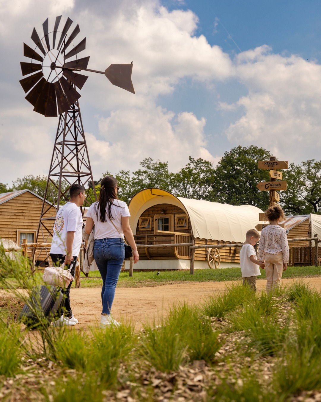 Conçue pour une installation extérieure durable, elle résiste aux conditions climatiques tout en servant de repère visuel fort au cœur du décor. Elle participe pleinement à l’immersion des visiteurs dans l’univers western.